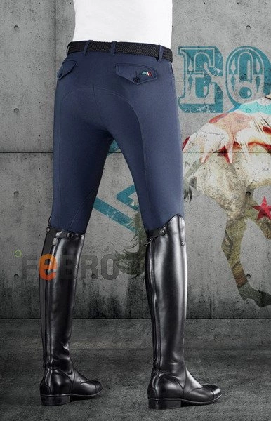 Męskie bryczesy Equiline Grafton z materiałowym lejem kolanowym - granatowe