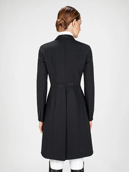 - Szyty w 100% we Włoszech, niezwykle elegancki długi frak Equiline Marilyn.