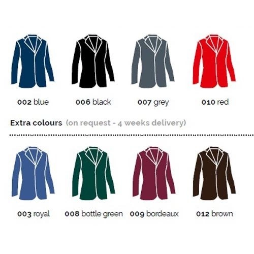 Dostępne kolory na zamówienie: royal (ciemny błękit), ciemna zieleń, czerwony, szary, bordowy i brązowy. Fraki w tych kolorach są szyte na specjalne zamówienie. W ich przypadku czas oczekiwania wynosi ok. 6 tygodni.