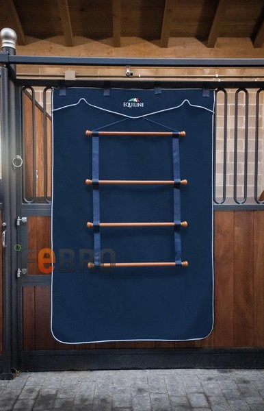 - Niezwykle elegancki, drewniany wieszak na czapraki i derki firmy Equiline. Drążki wykonane są z trwałego ciemnego drewna i połączone wytrzymałą i odporną na zabrudzenia taśmą. Wymiary: 115cm x 79cm. Taśma dostępna jest w dwóch kolorach.