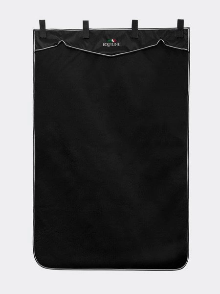 - Długa kurtyna Equiline Wave o wymiarach 200cm x 130cm. Jest odporna na wodę i zabrudzenia. Idealnie nadaje się do haftów. Na górze ozdobiona elegancką falbanką z dyskretnym logo Equiline.
