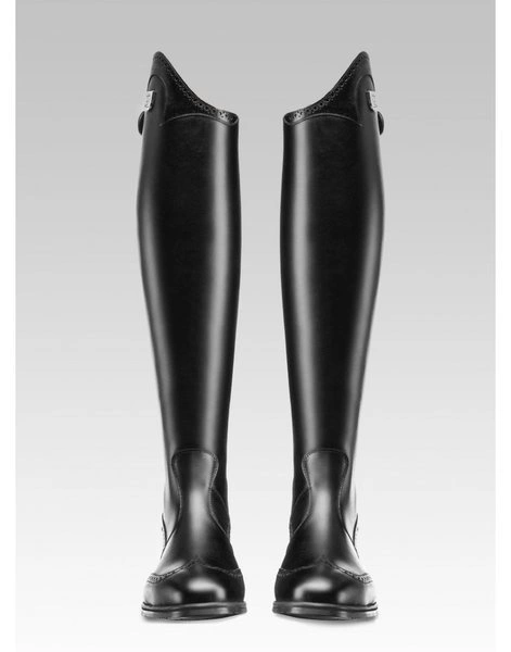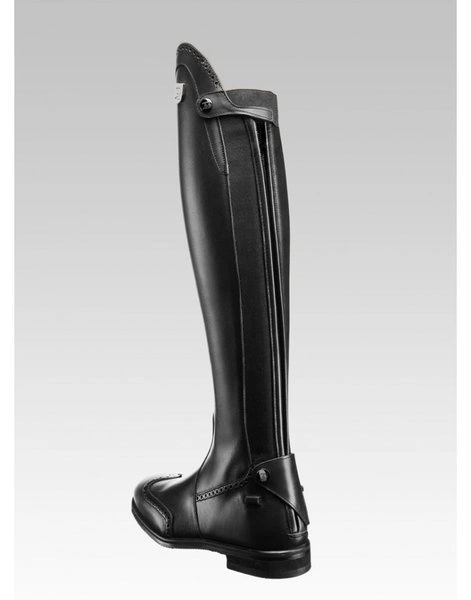 - Oficerki Tucci wyróżniają się innowacyjnym krojem, który optycznie wyszczupla i wydłuża nogę. Specjalny elastyczny pas wzdłuż zamka zapewnia idealne dopasowanie do łydki na całej długości, delikatnie pracuje z nogą jeźdźca, dzięki czemu komfort jazdy znaczne wzrasta.