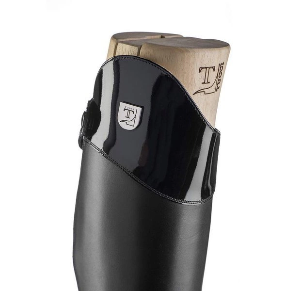 - Klasyczny pasek stanowiący odcięcie w górnej części cholewy wykonany z lakierowanej skóry w kolorze buta.
