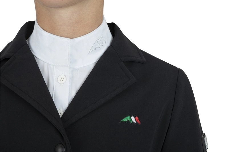 - Ozdobiony haftem z trzema konikami w kolorach włoskiej flagi na piersi oraz blaszką na ramieniu.