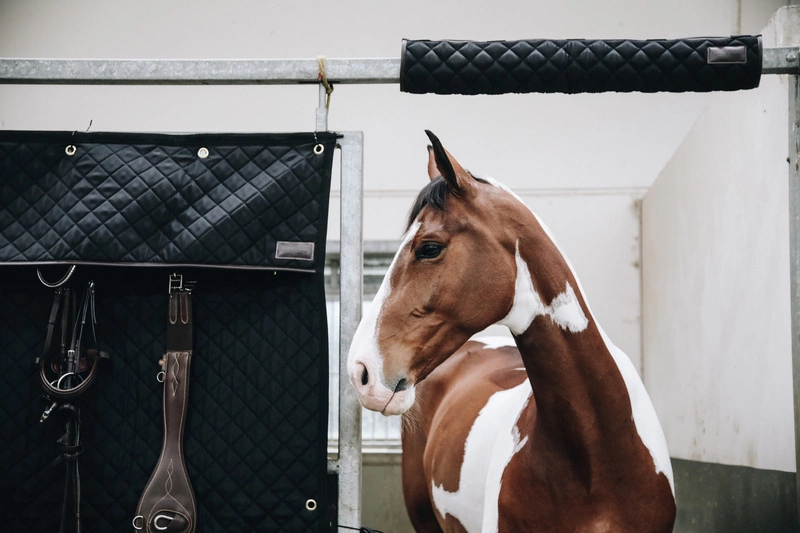 - Łatwy w montażu ochraniacz na boks to praktyczne i skuteczne rozwiązanie, pozwalające chronić wrażliwą głowę konia przed uderzeniami.