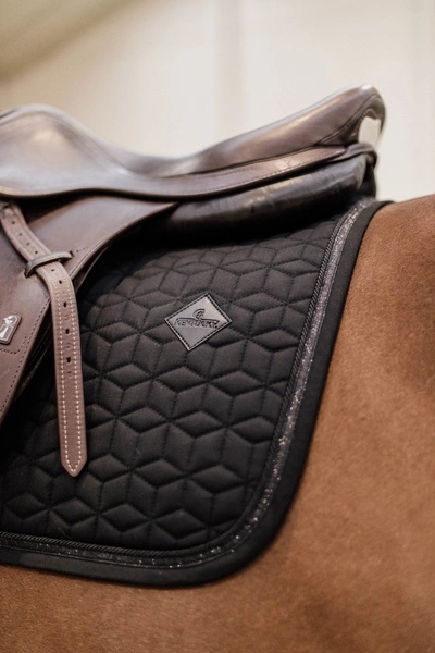 - Elegancki czaprak z ciekawym pikowaniem i uroczą, delikatnie mieniącą się brokatową lamówką.