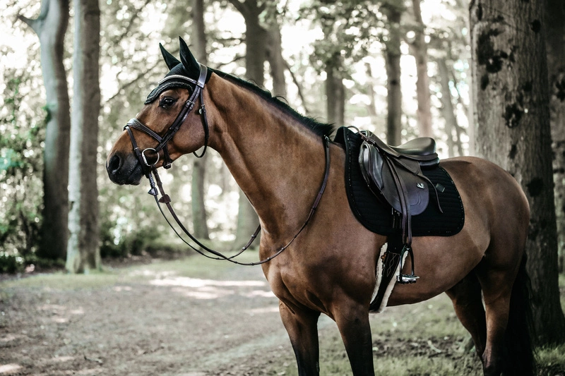 Cudownie się prezentuje na koniu! Mam gniadosza, ale ten granat jest obłędny, na stajni już miałam prośby o pożyczenie go na zawody (kasztan też wyglądał w nim obłędnie) oczywiście do kompletu zostały kupione nauszniki. Super jakość, jest z tych niebrudzących się, więc polecam