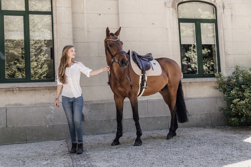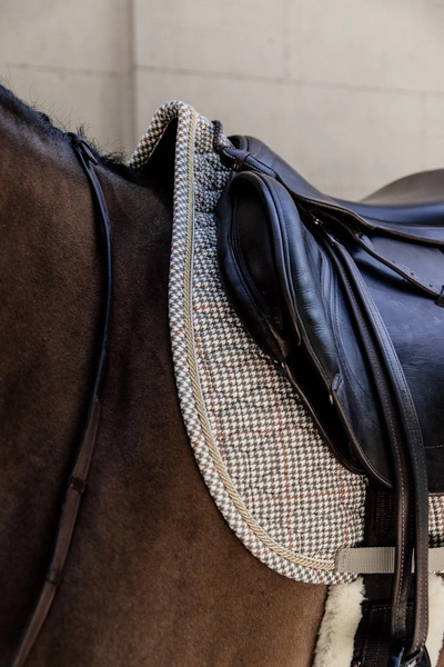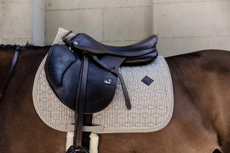 - Elegancki czaprak w klasyczną, modną krateczkę, ozdobiony, podwójnie plecionym sznurkiem. Zapewnia doskonałą amortyzację między grzbietem konia a siodłem. Anatomicznie wyprofilowany, bardzo dobrze się układa, nie uciska na kłąb i nie przesuwa się.