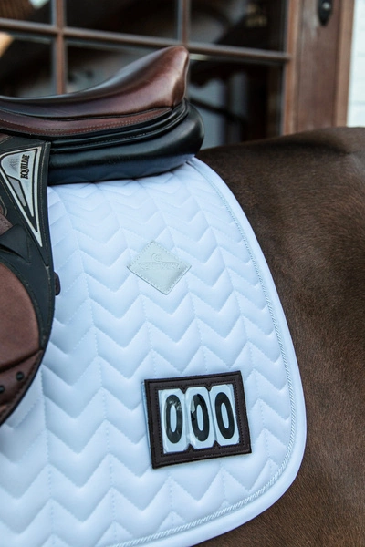 Dzięki wysokiej gramaturze czaprak świetnie układa się na końskich plecach.