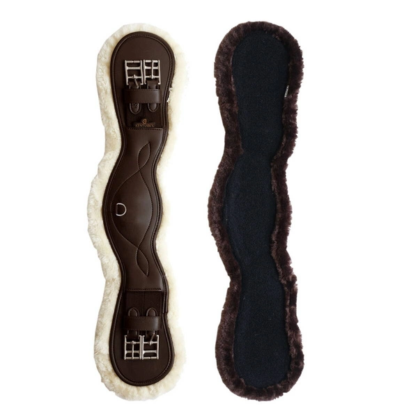Czarny popręg posiada jedno naturalne futro i jedno czarne, natomiast brązowy popręg ma w zestawie futro w kolorze naturalnym i brązowym.