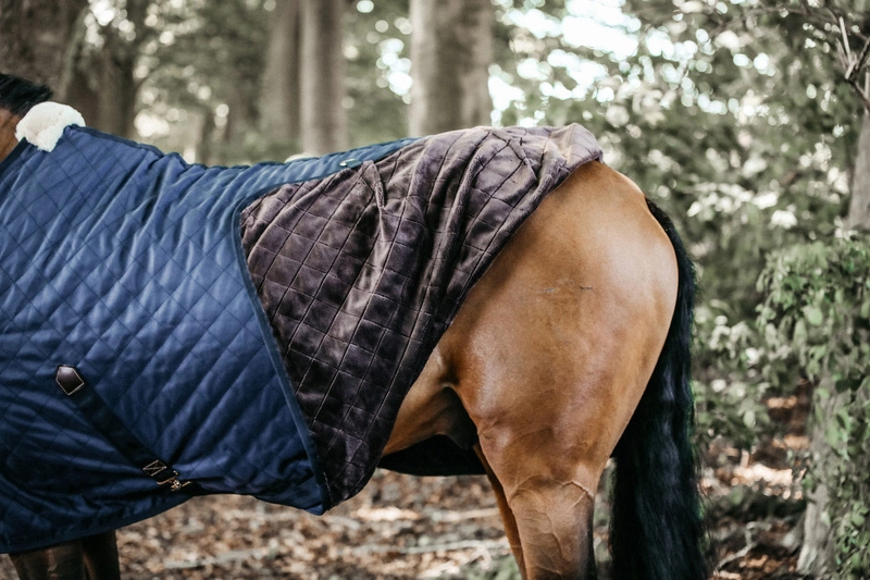 Końskie włosy nie przyczepiają się do podszewki, jest więc bardzo łatwa w pielęgnacji i do utrzymania w czystości. Ponadto sztuczne królicze futro zapewnia doskonałą izolację cieplną, a dodatkowo pielęgnuje końską sierść, czyniąc ją gładką i błyszczącą. Ze względu na świetny stosunek ciepła do wagi, derka jest naprawdę komfortowa. Na kłębie podszyta sztucznym futrem, które gwarantuje perfekcyjną ochronę tego newralgicznego miejsca. Zewnętrzna tkanina pikowana w elegancki wzór, który jednocześnie gwarantuje wysoką wytrzymałość materiału, dzięki czemu derka jest odporna na gryzienie czy inne uszkodzenia. Co ważne, do derki nie przyczepiają się trociny czy słoma.