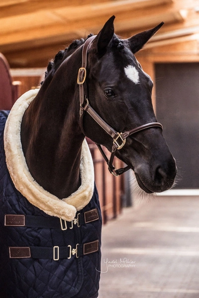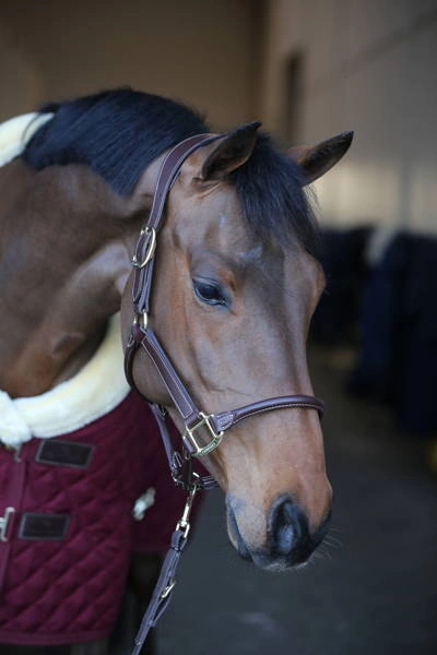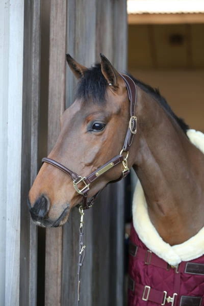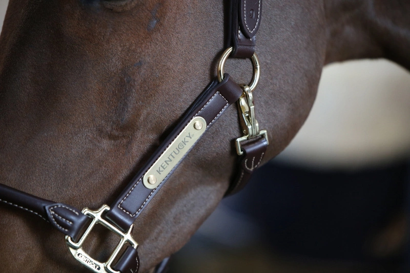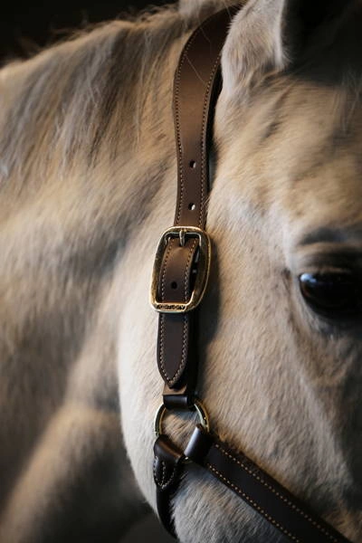 Dzięki złotym okuciom, części nosowej wykonanej ze skórzanego splotu i tabliczce do wygrawerowania umiejscowionej na pasku policzkowym, kantar jest bardzo elegancki i ekskluzywny.