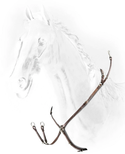 - Napierśnik Equiline w trzech miejscach mocowany do siodła: do popręgu i do kółeczek przy siodle.