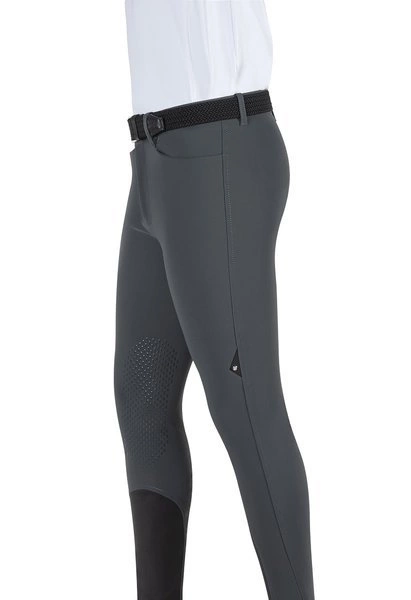 Męskie bryczesy Equiline Grantk z silikonowym lejem kolanowym X-Grip - szare