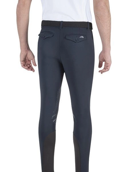 - Klasyczne męskie bryczesy z silikonowym, odpornym na ścieranie, kolanowym lejem typu X-Grip pochodzące z regularnej kolekcji Equiline Competition.