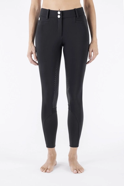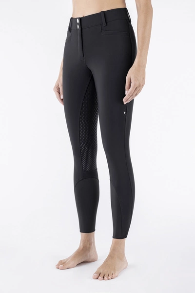 Damskie bryczesy Equiline Adellek z wysokim stanem i pełnym lejem X-Grip - czarne