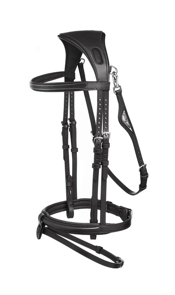 - Model BJ301 charakteryzuje się szerokim, wygodnym dla konia paskiem potylicznym.