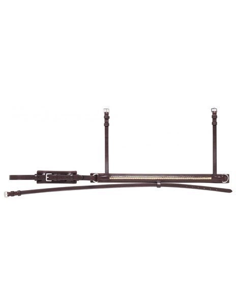 - Skórzany nachrapnik szwedzki Equiline NB0455. Nachrapnik posiada podszycie z miękkiej skóry. W zestawie ze skośnikiem. Ozdobiony złotymi kosteczkami.