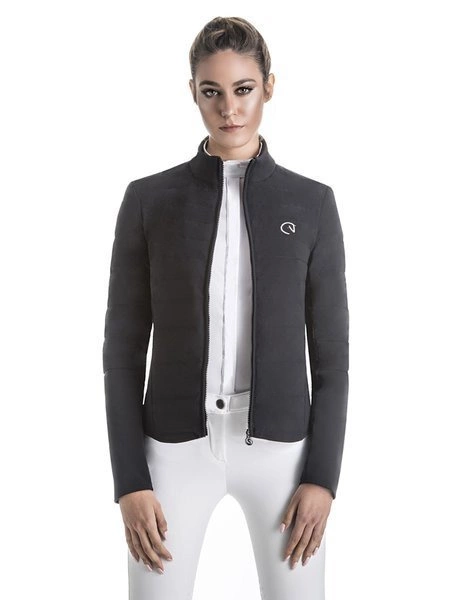 - Damska sportowa kurtka typu bomber, delikatnie pikowana w szerokie pasy.