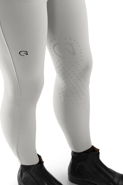 - Elastyczne bryczesy Ego7 z silikonowym lejem kolanowym ułożonym z kropek i logo firmy.