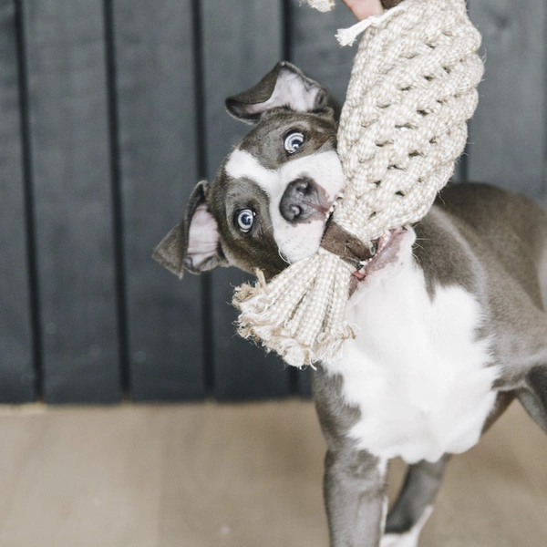 - Zabawka zapewni Twojemu psu wiele godzin zabawy! Wykonana z mocnej bawełnianej liny, zawiera plastikową butelkę, która wydaje trzaskający dźwięk. Twój pies będzie zaintrygowany i rozbawiony!