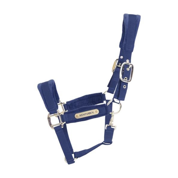 - Anatomiczny kantar Kentucky ozdobiony na nachrapniku i paskach policzkowych efektownymi, aksamitnymi dodatkami w kolorze kantara.