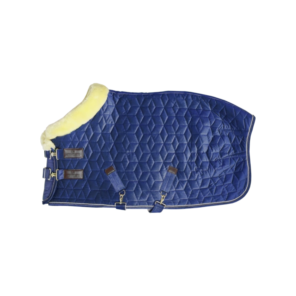 Aksamitna warstwa zewnętrzna, gruby futrzany kołnierz i podszewka ze sztucznego króliczego futra sprawią, że to będzie nie tylko Twoja ulubiona derka, ale i Twojego Konia. :)