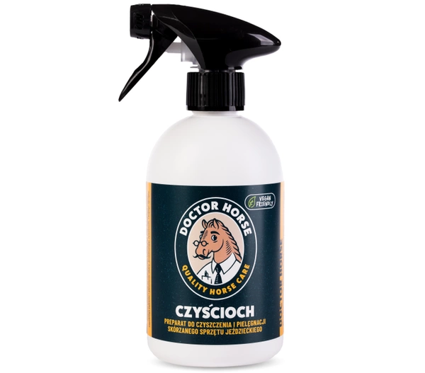 Przemyślane i wielokrotnie testowane opakowania Doctor Horse sprawiają, że czyszczenie sprzętu staje się bajecznie proste. Czyścioch wyposażony jest w rozpylacz, który w kilka minut pozwala na pozbycie się najbardziej uporczywego, stajennego brudu.
