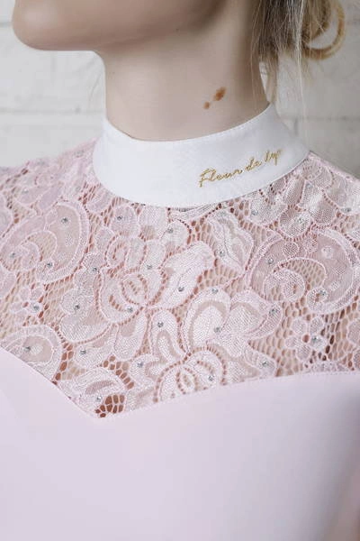 - W górnej części oraz na rękawach ozdobiona jest elastyczną i przyjemną dla skóry koronką gęsto obsypaną mieniącymi się kryształkami Swarovskiego.