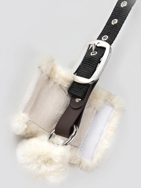 -> Nylon i sprzączki pokryte sztuczną owczą skórą zapobiegającą kontuzjom,