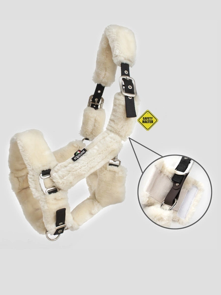 - Bezpieczny kantar skórzany Equiline Terris z futrem z elementem zabezpieczającym, podczas nacisku podskakuje i pozwala koniowi uwolnić się bez zranienia szyi i zerwania kantara czy uwiązu. Część można następnie wymienić.