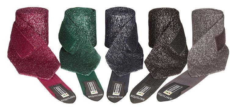 • Brokatowe bandaże Equiline Glitter idealne do użytku w stajni lub podczas podróży. Posiadają piękną mieniącą się nić wplecioną w materiał i zapinane są na bezpieczne i mocne zapięcia na rzepy. Dwie sztuki w komplecie.