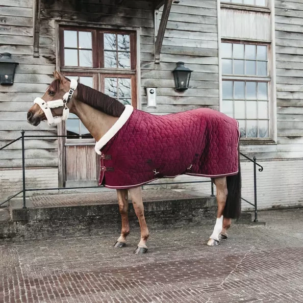 Aksamitna warstwa zewnętrzna, gruby futrzany kołnierz i podszewka ze sztucznego króliczego futra sprawią, że to będzie nie tylko Twoja ulubiona derka, ale i Twojego Konia. :)