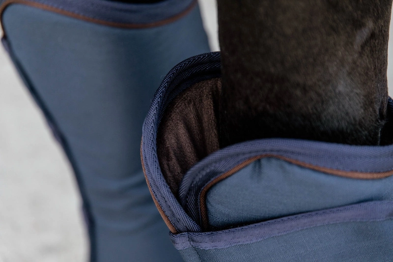• Wygodne ochraniacze transportowe na 4 nogi są zapinane na 3 mocne rzepy. Miękkie podszycie sztucznym króliczym futrem chroni przed obtarciami. Wykończone sztuczną skórą na wysokości koronek.