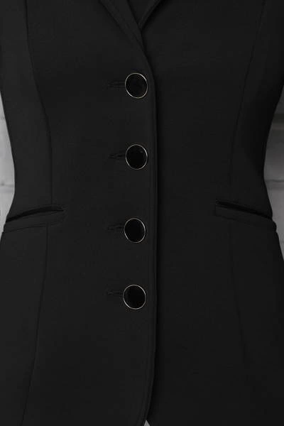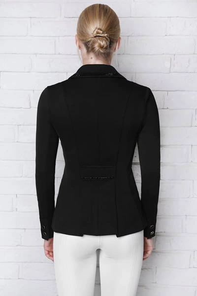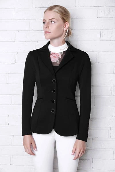 - Na kołnierzyku, rękawie oraz na plecach ozdobiony subtelnie mieniącymi się kamyczkami Swarovski'ego w kolorze fraka.