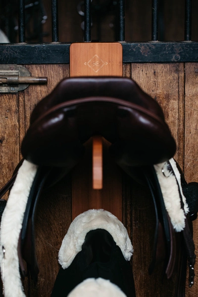 - Drewniany wieszak na siodła z kolekcji Grooming Delux.