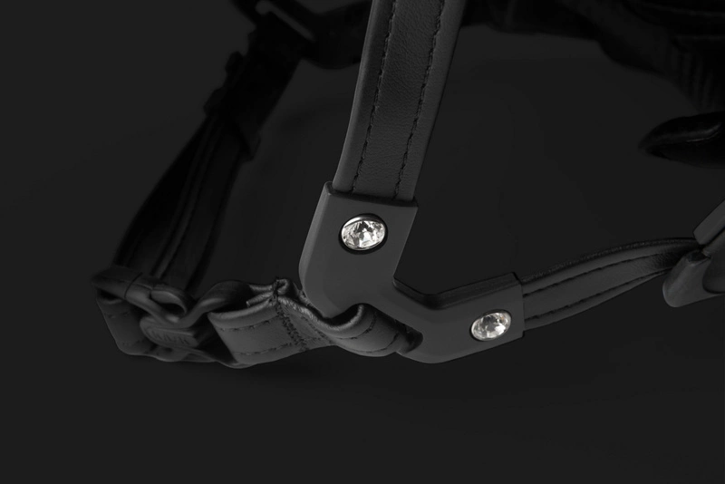 • Miękki, delikatny w dotyku pasek podbródkowy, wykonany z eko-skóry zapewnia komfort i zapobiega otarciom.