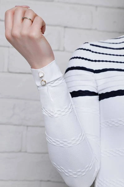 - Prążkowanie materiału podkreśla sylwetkę i nadaje niecodziennego wyglądu koszuli.