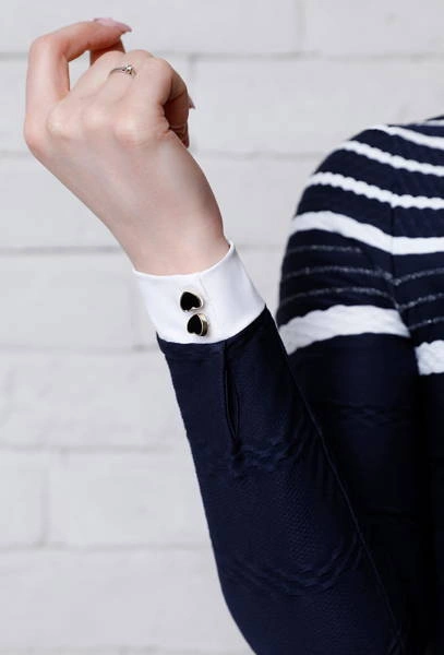 - Koszula konkursowa Hazel to szyk i elegancja dzięki połączeniu bieli i granatu.