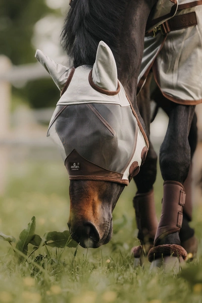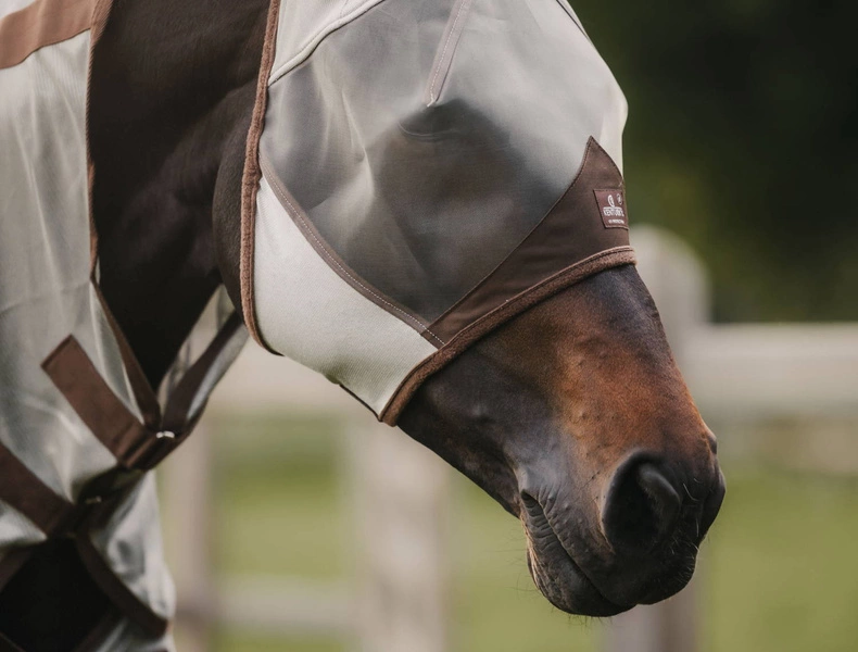 Wszystkie miejsca styku maski z końską skórą są miękko podszyte. Tak, aby zapewnić komfort nawet podczas całodziennego noszenia.