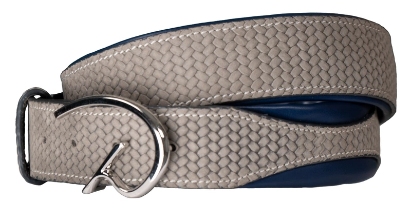 - Pleciony pasek Dy'on o szerokości 35 mm i długości od 70 do 125 cm z klamrą D ze stali nierdzewnej.