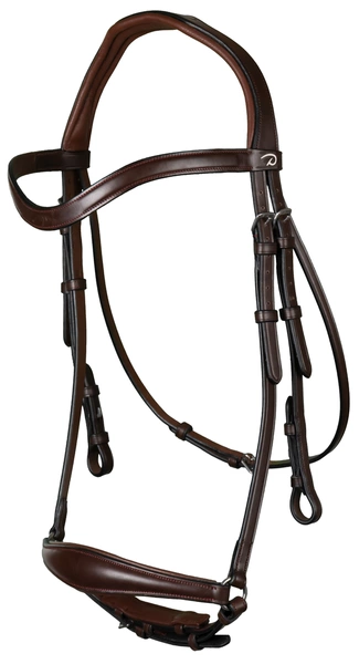 - Ogłowie z kolekcji Dressage Collection in flat leather. Posiada lekko opadający naczółek oraz nachrapnik hanowerski. Dostępne w kolorze czarnym i brązowym.