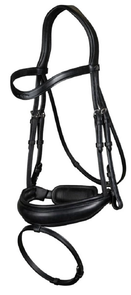 - Ogłowie z kolekcji Dressage Collection in flat leather. Posiada lekko opadający naczółek oraz szeroki, matowy nachrapnik szwedzki. Dostępne w kolorze czarnym i brązowym.