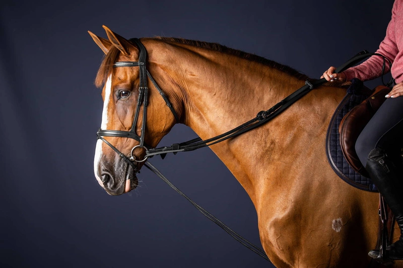 - Skórzana wodza pomocnicza Dy'on z kolekcji New English. Szerokość wodzy: 1,6cm. Zakończona sznurkiem i dwoma karabińczykami. Kolekcja New English charakteryzuje się przeszyciami w kolorze skóry i srebrnymi okuciami.