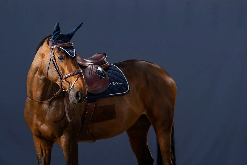 Dostępny w rozmiarze skokowym i ujeżdżeniowym, w kolorze granatowym i czarnym.Marka